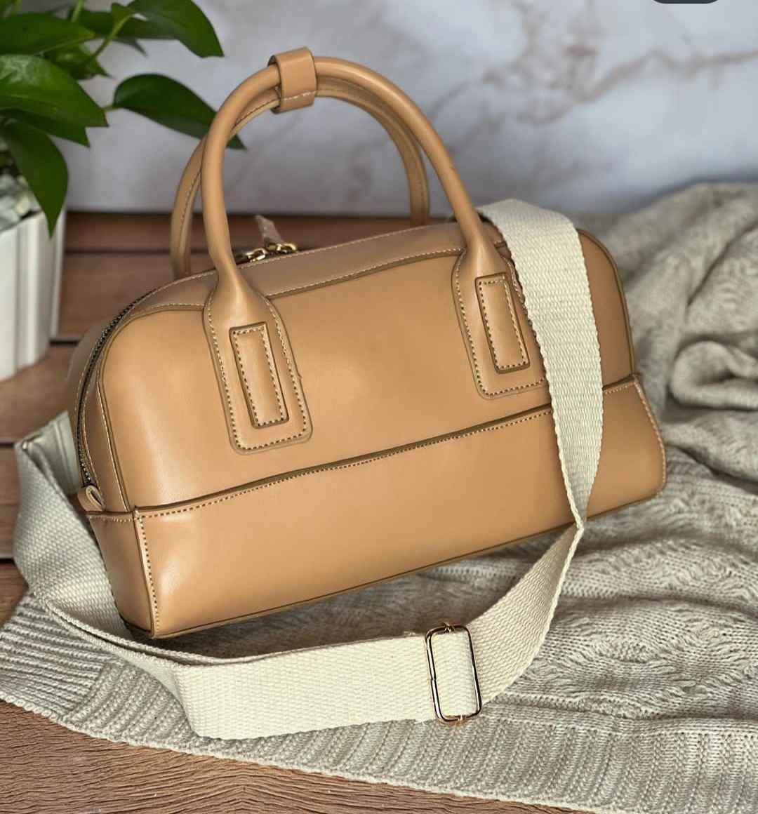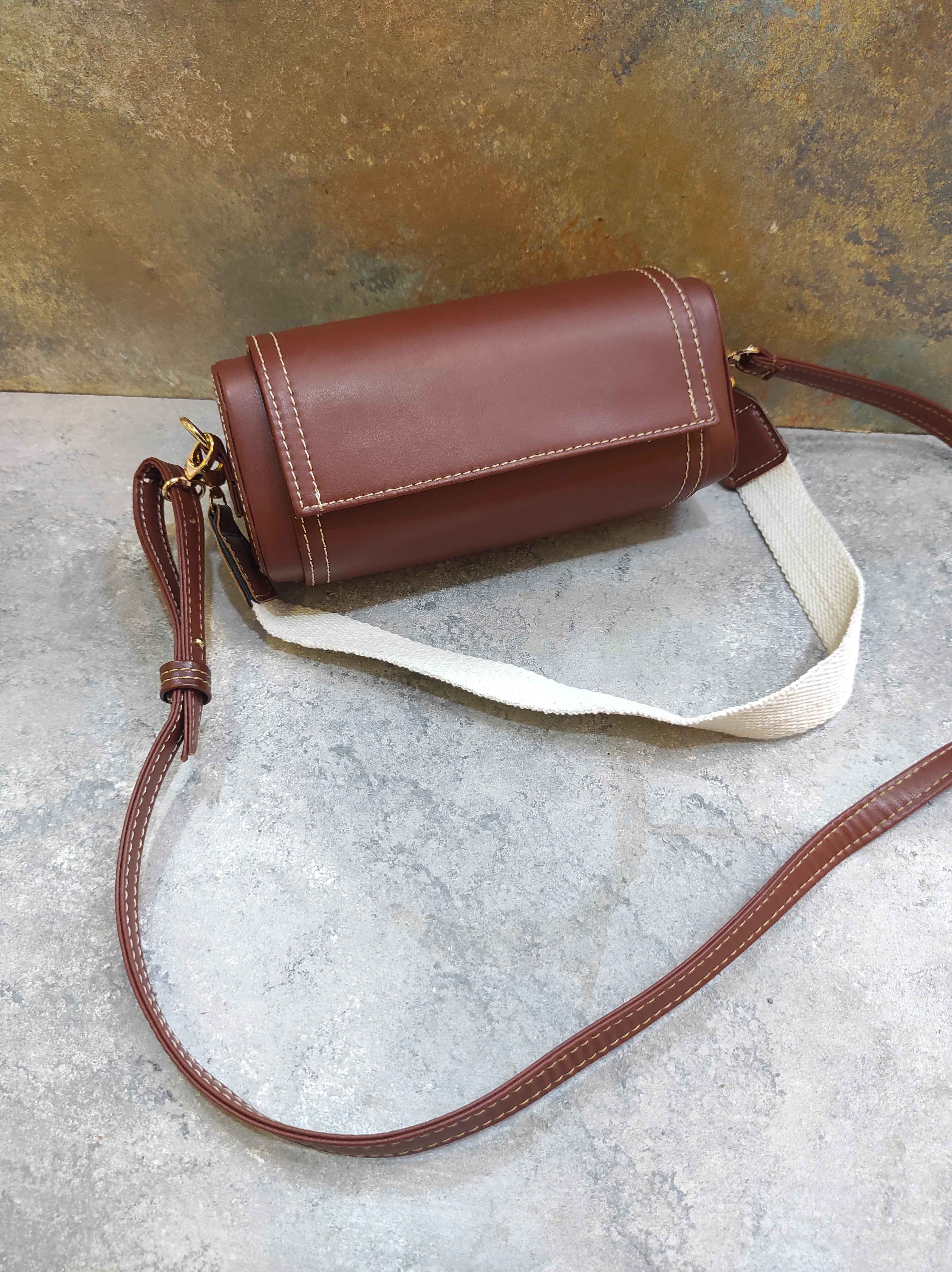 کیف اسپرت کلاسیک چرم،بند قابل تنظیم ،رنگ کرم و عسلی